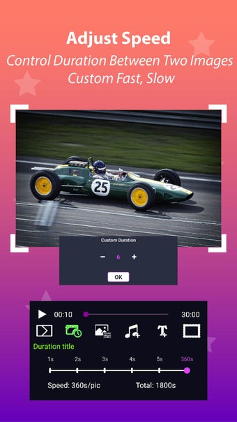 Video Maker är en app för att skapa bildspel med musik och videoredigering. Den låter dig redigera dina bilder med olika effekter, övergångar och lägga till musik. Du kan anpassa varaktigheten för varje bildruta och utseendet för varje bild.